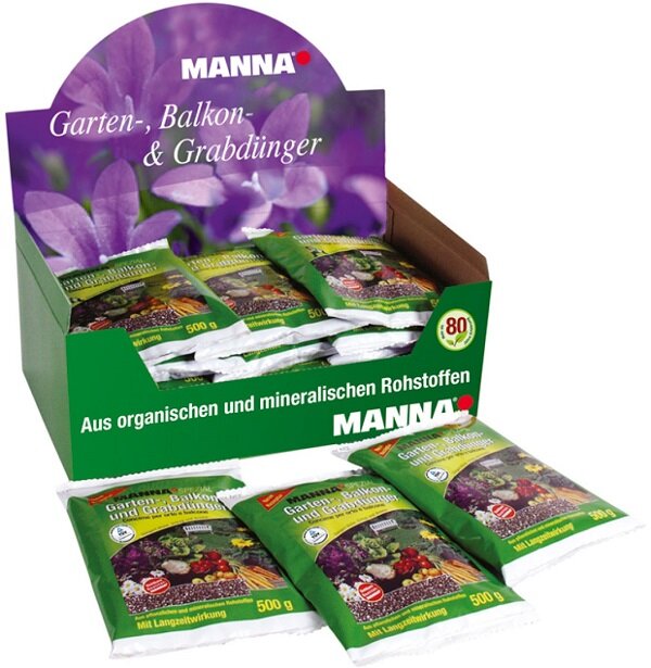 MANNA® Garten-, Balkon- und Grabdünger vor der Aussaat bzw. Pflanzung oder bei bestehenden Pflanzungen gleichmäßig ausstreuen und in die oberste Bodenschicht einarbeiten.